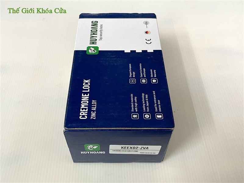 Sản phẩm chốt cremone EX 02-ZVA được sản xuất bằng vật liệu hợp kim ZDC-2 được điện di vàng.