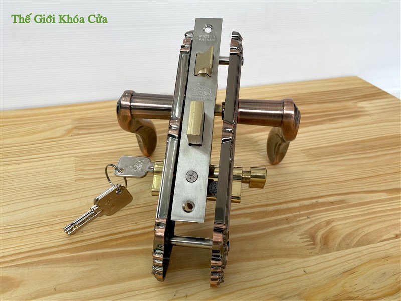 Ổ khóa làm bằng đồng vàng (đồng thau), được thiết kế chìa vi tính ( 7 bi ) tránh bị trùng chìa, rất an toàn.