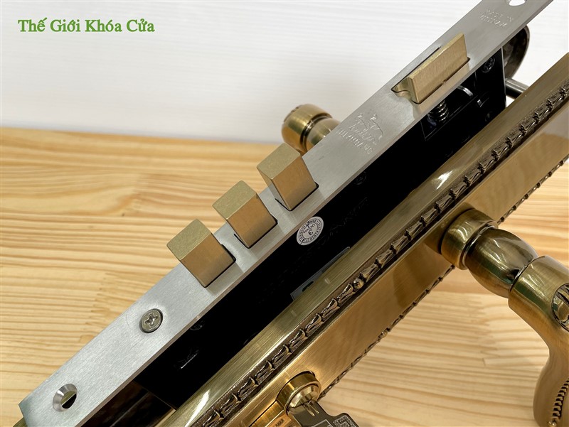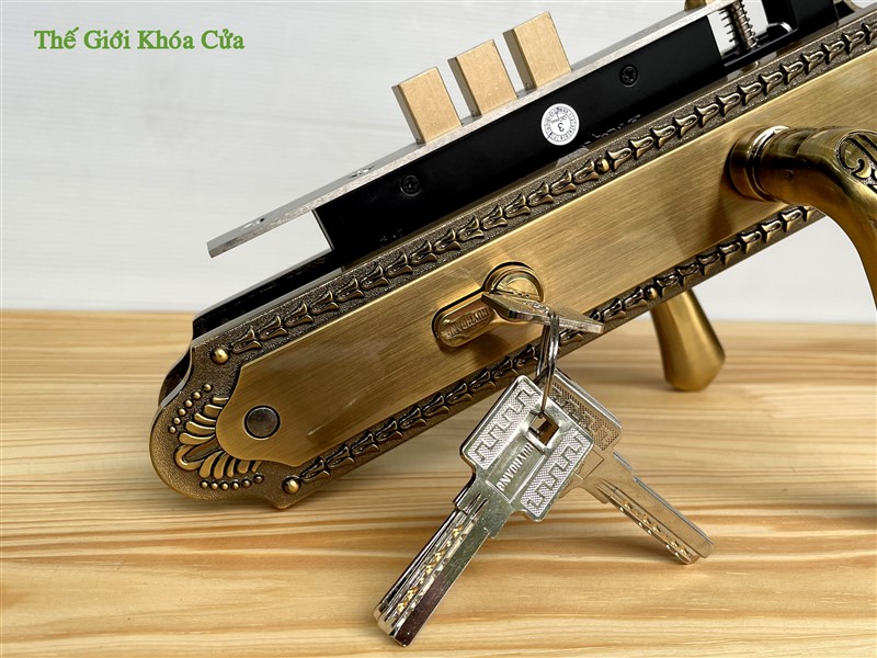 Ổ khóa làm bằng đồng vàng (đồng thau), được thiết kế chìa vi tính ( 7 bi ) tránh bị trùng chìa, rất an toàn.