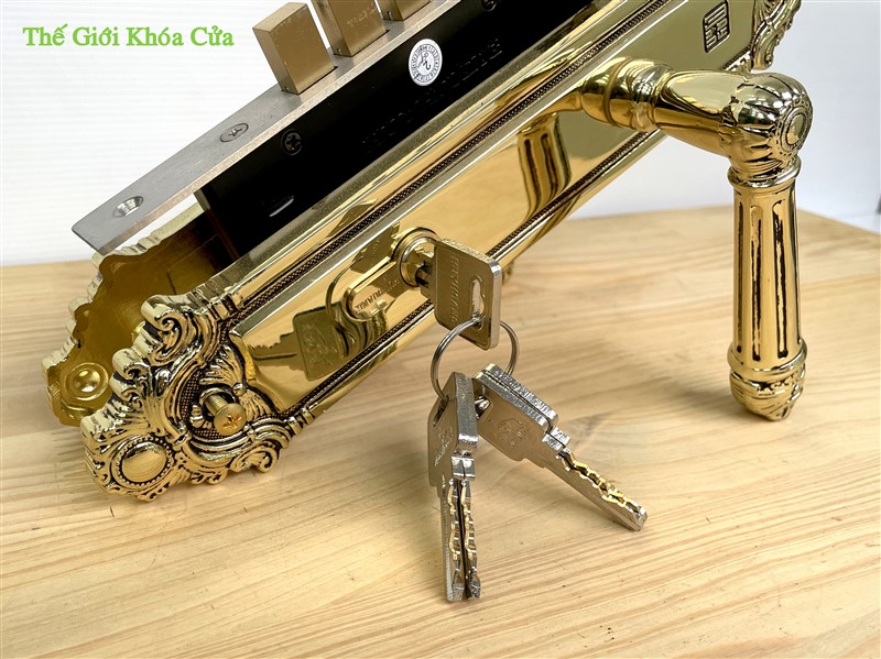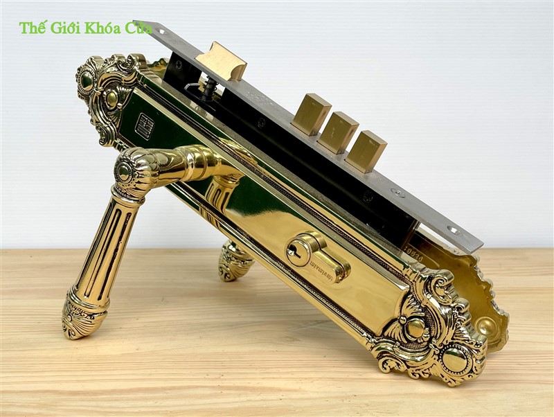 Ổ khóa làm bằng đồng vàng (đồng thau), sử dụng chìa vi tính tránh bị trùng chìa, dò chìa, rất an toàn. Ngoài ra có thể thay thế bằng Ổ khóa Huy Hoàng - Abus, một sản phẩm của sự kết hợp của Khóa Huy Hoàng và tập đoàn Abus từ CHLB Đức (Tập đoàn Abus là tập đoàn số 1 thế giới về các sản phẩm trong lĩnh vực an toàn)