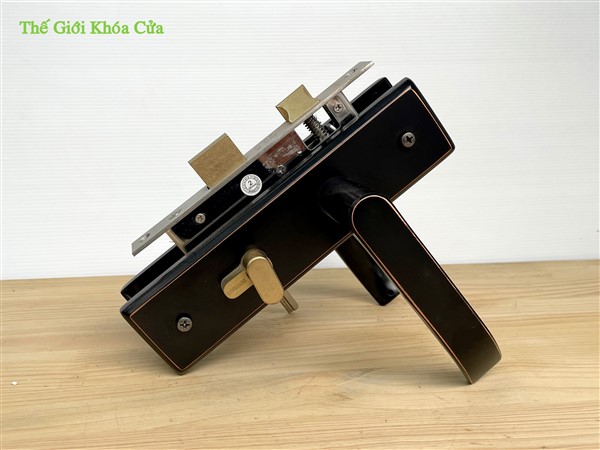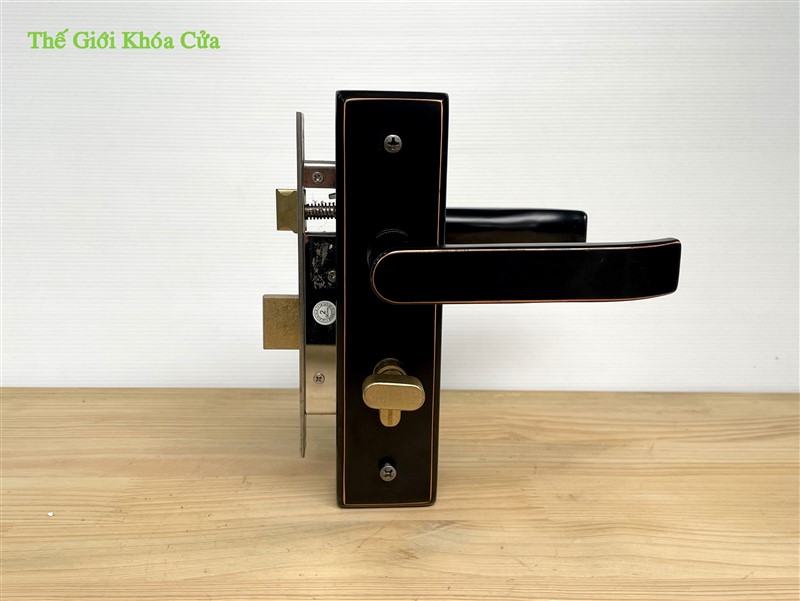 - Tay ốp khóa được sản xuất bằng vật liệu Inox 304 và được mạ màu đen viền đồng (Đồng đen American)