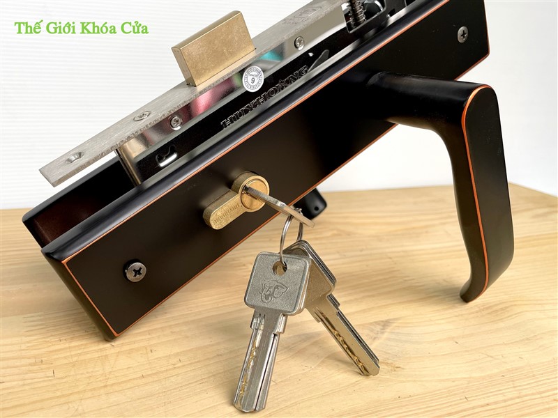 - Then khóa, Ổ khóa được làm bằng đồng vàng (đồng thau) có kết cấu chắc chắn, an toàn. Ổ khóa sử dụng chìa vi tính tránh bị trùng chìa, dò chìa, rất an toàn