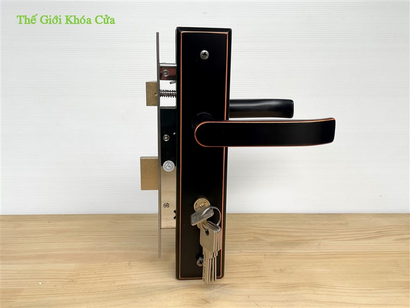 - Tay ốp khóa được sản xuất bằng vật liệu Inox 304 và được mạ màu đen viền đồng (Đồng đen American)