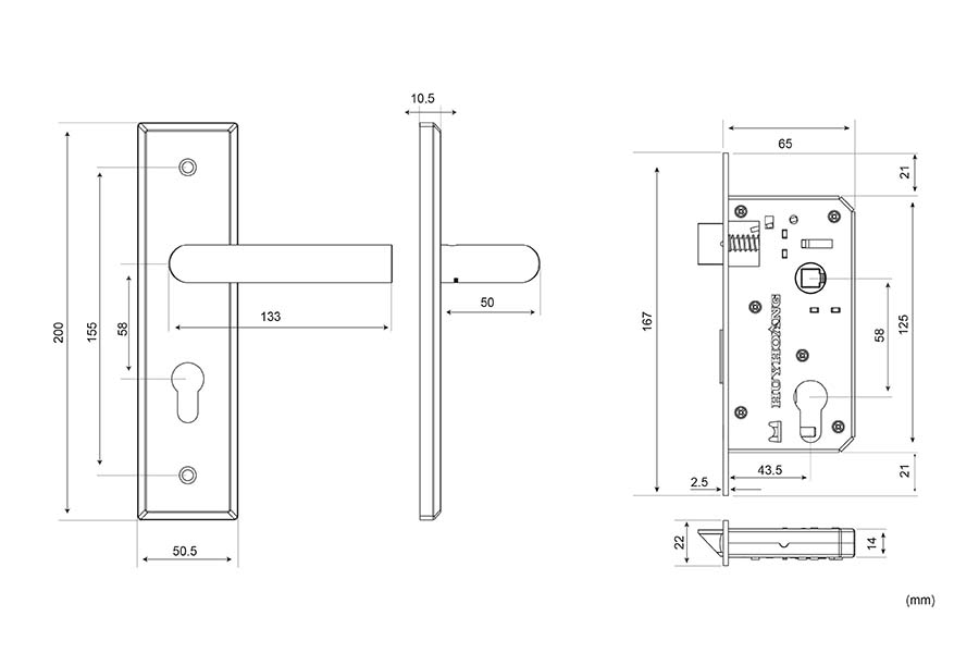 Khóa có tay khóa dạng tròn khỏe khoắn. Ốp khóa hình chữ nhật cho kiểu dáng hiện đại, không lỗi mốt theo thời gian.